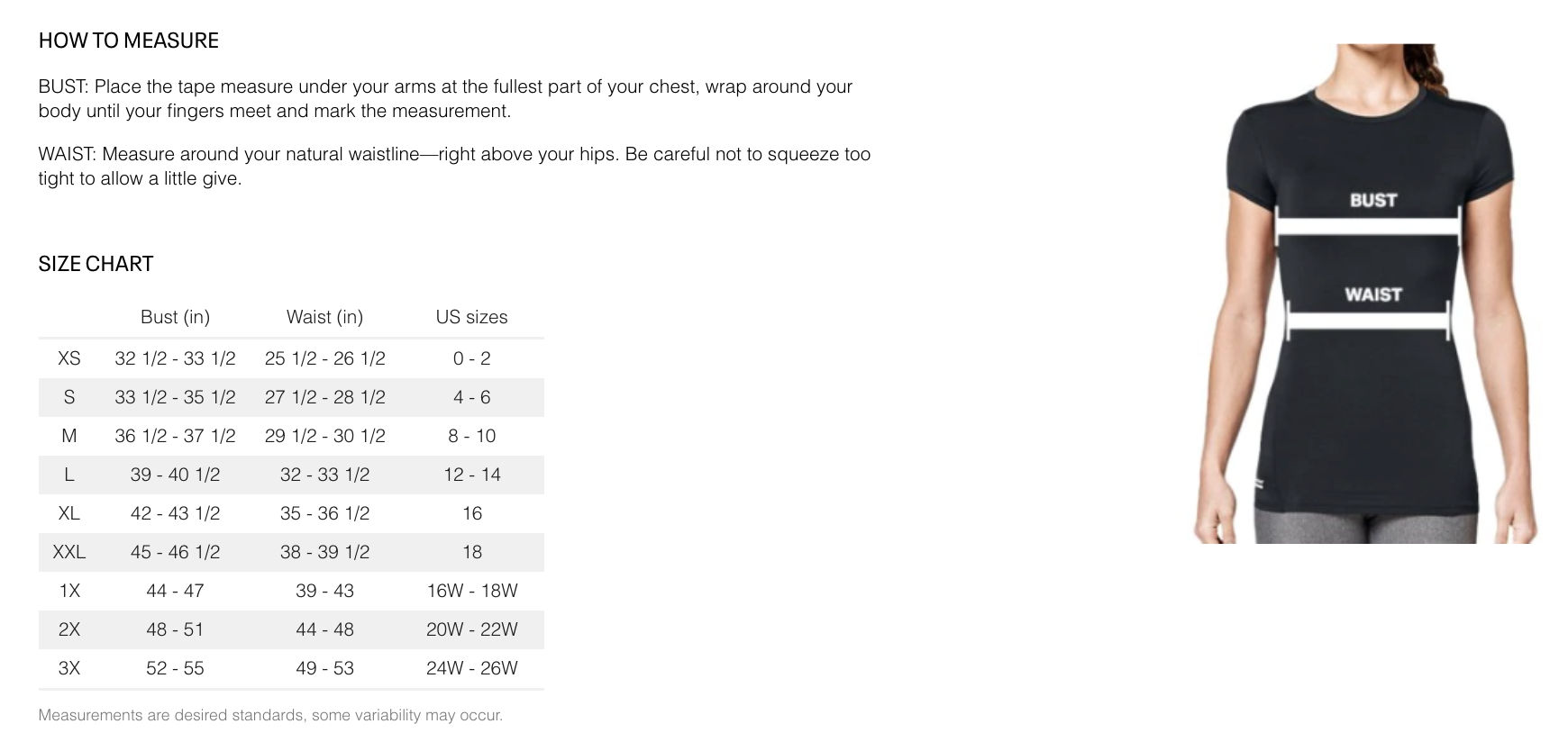 Below are sizing guides used by Under Armour. You can help determine your sizing by using the information below.